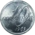 Cr$10 | 23 mm | 1965 | Portrays a relief map of Brazil |