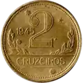 Cr$1 | 23 mm | 1942-1956 | Portrays a relief map of Brazil |