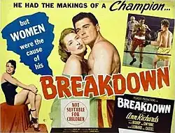 Breakdown is a 1952 American crime film noir directed by Edmond Angelo starring Ann Richards, William Bishop and Anne Gwynne. It was the last film of Richards before she retired.[1]