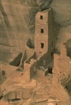 Square Tower House Anasazi Pueblo III Cortez Mesa Verde National Park The Square Tower House is one of the stops on the Mesa Top Loop Road diving tour.[52] The tower that gives this site its name is the tallest structure in Mesa Verde. This cliff dwelling was occupied between 1200 and 1300.