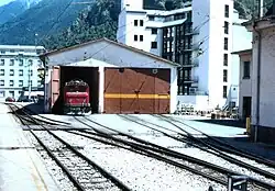 North of the MGB station is an extensive layout of tracks, which are utilised primarily for goods traffic and the storage of vehicles. Since soon after the 1966 avalanche, the station throat has been covered by a massive avalanche gallery. This so-called Schafgrabengalerie (sheep's grave gallery) is laid out with two tracks, and also allows avalanche-safe storage of vehicles. To the east of this gallery are open sidings, which can be used only to a limited extent in winter due to the risk of avalanches.