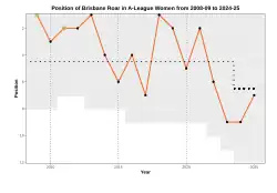 Chart of yearly table positions for Brisbane Roar in A-League Women