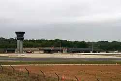 Earthworks began in October 2005 and continued until spring 2007 as the 200ha limestone site needed to be levelled and filled.[2] 2.8 million m3 of earth was moved during these earthworks.[2] The runway, 2.1 km long and 45m wide, was laid down in 2008, as were taxiways and aprons, while the building work for the airport control tower and buildings was underway in 2009.[2] The official inauguration was on 15 June 15, 2010.[2]
