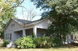 The Brown House is a historic house on Elm Street in Bald Knob, Arkansas. It is a single-story wood-frame structure, finished in brick, with a front-facing gable roof and a gable-roof porch that projects to the side. The porch is supported by brick columns set on a low stuccoed wall. The deep eaves of the roof feature knee brackets and exposed rafter ends. Dating to the mid-1920s, it is a local example of Craftsman architecture.[2]