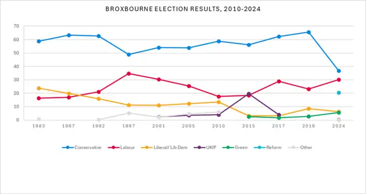 Broxbourne is one of three constituencies in Hertfordshire to be held by the Conservative Party after the 2024 general election.