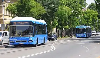 After the fall of Communism, BKV was traditionally plagued by a lack of funding. It survived by selling some of its garages and repair bases for mall and housing development. As of October 2009 the average BKV diesel bus was 16.5 years old and the oldest one of the 1,400 strong fleet was 24 years old, with 3.5 million kilometers to its track record. Yet starting in 2010, a bus replacement program scrapped most of those old buses and increased the ratio of modern, air-conditioned low-floor buses to 80% by 2016.[3] Since November 2022, BKV operates only low-floor buses.
