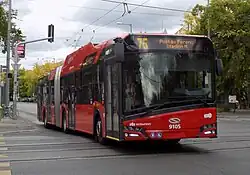 Ikarus 435T: Ikarus 435 articulated body equipped with Kiepe electronics. The last remaining vehicles were taken out of service in February and March 2023, with one vehicle reserved for historical purposes.[6]