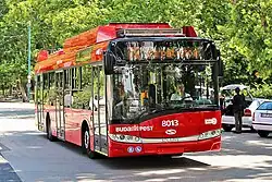 Solaris Trollino: Polish-made fully low-floor 12-meter (39.4 ft) buses designed as genuine ETB vehicles. They do surprisingly well on bad Budapest roads, but the fleet is limited: BKV operates only 16 of them. Following the fiscal collapse of the Ganz Transelektro Group, the local co-manufacturer the delivery of the 2nd series was delayed for several months, and was finalized by Skoda, the new owner of Ganz Transelektro. In 2015, 36 new, Škoda-Solaris Trollino trolleybuses arrived. 12 of them are 18 meters long, with articulated body, the others the 12-meter long version. In 2019, 21 new trolleybuses arrived. As of 2023, there are a total of 108 Škoda-Solaris Trollino trolleybuses running in Budapest.