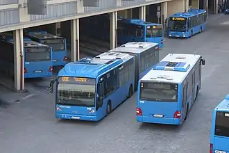 Mercedes-Benz Citaro: Purchased and entered service in 2012, these buses were bought used from various Western-European cities. 12 metres (39 ft) long, entirely low-floor buses. As a result from originating from different places, certain buses can have major differences between each other. The ones manufactured the earliest are the C1 type, and are quite disliked because of their loud motors and doors. They are also notorious for being flammable and catching on fire. All have been retrofitted with larger windows and the standard BKV colors. 150 brand new Citaro C2 buses were purchased in 2013, and were operated by ArrivaBus until the end of their contract in 2023, when apart from four instructor, one single and one articulated bus, all of them were taken out of service. BKV purchased 21 CNG-powered Citaro C1's from Sweden in 2016,[5] but similar to the regular C1's they were unreliable and eventually decided to take all buses out of service only 4 years after buying them.