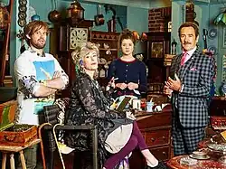 ![]() Promotional image released in anticipation of the series' broadcast, from left to right: Naz Osmanoglu (Toby), Maureen Lipman (Beverley Bull), Claudia Jessie (Faye), and Robert Lindsay (Rupert Bull) | |