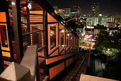 The 1901 Angels Flight funicular railway, originally connecting Hill Street and Olive Street immediately south of the east end of the 3rd Street Tunnel, was dismantled in 1969, relocated approximately 300 feet (91 m) further south and rebuilt in 1996 to connect Hill Street with California Plaza.[25]