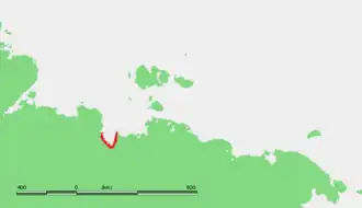 It lies at the western end of the Yana-Indigirka Lowland, between the eastern side of the Lena delta on its western side and Cape Buor-Khaya at its NE end. Tiksi Bay and the Bykovsky Peninsula are on the western shores of the Buor-Khaya Gulf.[2]