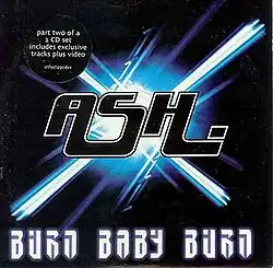"Burn Baby Burn" is a song by Ash, released as the second single from the Free All Angels album on 2 April 2001, reaching number 13 on the UK Singles Chart and number 20 in Ireland. It was released as a single CD (released on 2CD formats, the second of which being an enhanced CD) and as a 7" vinyl, and was also released for the first time on DVD format. The song can also be found on the Intergalactic Sonic 7″s hits collection.[2]