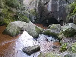 According to local folklore, the cave behind the waterfall in the Vat was used by Rob Roy, a notorious outlaw, to hide from the authorities.[2] In fact, this is not true,[3] with the cave instead being used as a hiding place for Patrick Gilroy Macgregor, an outlaw renowned for his exploits in Deeside during the 17th century and a possible relative of Rob Roy.[2]
