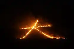 There are many locations in Japan where this ritual is held. In western Japan, the Okuribi of the Five Mountains (Gozan no Okuribi) or simply called "Daimonji", celebrated in Kyoto, is the most famous,[1] while in eastern Japan, the ritual during the Hakone Gora Summer Festival with the fire burned on Mount Myōjō in the Hakone Mountains is relatively well known because of its proximity to Tokyo.[2]
