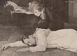 Bayard Veiller's play had premiered on Broadway in May 1907,[2] and had been reprised during the 1919 season.[3] The working title of the film was The Primrose Path, the same as Veiller's play. In December 1919 it was announced that the play was being adapted for the screen by Universal.[4] Initially, Lola Gonzales was tagged for the lead role of Joan Templeton. Gonzales was a professional model.[5] However, a week later, it was announced that Josephine Hill had replaced Gonzales in the cast. At the same time it was announced that Frank Mayo, Mae Busch, Beatrice Burnham, and Rudolph Christians were also members of the cast.[6] In early January 1920, the name was changed to Burnt Wings.[7] The picture wrapped filming by mid-February 1920.[8] In February it was announced that the picture would be released on March 29, 1920.[9][10]