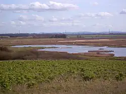 The RSPB bought land for the original Inner Marsh Farm reserve in 1986 and the reserve opened in June 1992.[3] Three shallow, freshwater pools were created as well as a footpath leading to a hide overlooking the pools. Because of restrictions from the local council, the RSPB did not publicise the reserve and access was originally for members only. The reserve was closed on Tuesdays for essential maintenance.[4] There was a small car park at the end of an untarmacked road, signposted for Burton Point Farm, off Station Road.