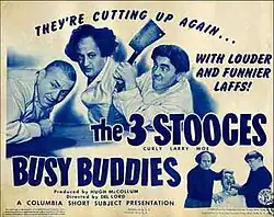 Busy Buddies is a 1944 short subject directed by Del Lord starring American slapstick comedy team The Three Stooges (Moe Howard, Larry Fine and Curly Howard). It is the 78th entry in the series released by Columbia Pictures starring the comedians, who released 190 shorts for the studio between 1934 and 1959.