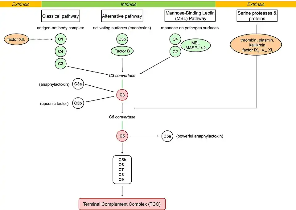 This figure represents the complement system and the various pathways involved in the cascade.