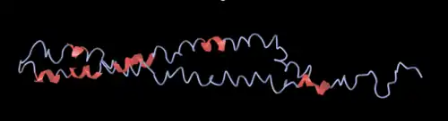 There is a high amount of disorder in the secondary and tertiary protein structure, with very few predicted alpha helixes or beta sheets.[15][17]
