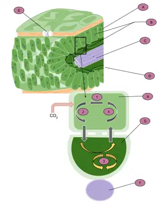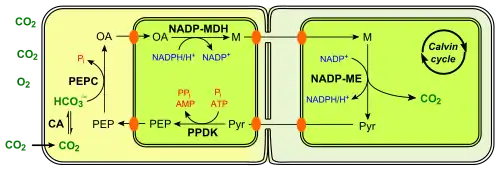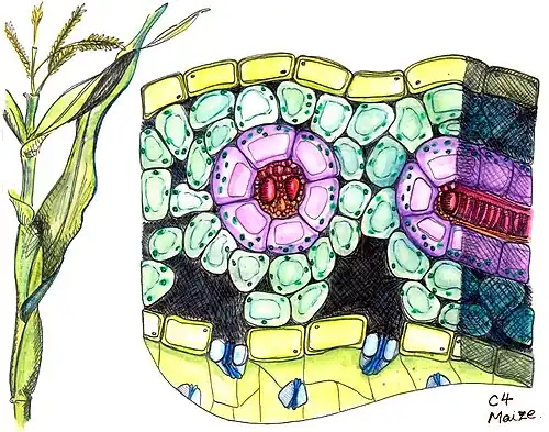 - ^ a b Kellogg EA (July 2013). "C4 photosynthesis". Current Biology. 23 (14): R594-9. doi:10.1016/j.cub.2013.04.066. PMID 23885869.