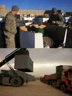 The 593rd Sustainment Brigade (SB) was the first headquarters to command and control the Army's CENTCOM Materiel Recovery Element (CMRE). The 593d SB, led by Colonel Douglas McBride and Command Sergeant Major Eric Taylor, comprising 3,371 active duty, Reserve and National Guard soldiers, sailors, airmen, marines, Department of Defense civilians, and contractors, conducted over 110 geographically dispersed general engineering construction missions in remote and urban environments covering an area larger than Texas (250,000 square miles). The 593d SB processed 17,000 materiel release orders, which constituted the shipping of over 9,000 twenty foot container equivalent units (TEU) of materiel out of Afghanistan, reestablishing positive accountability of over $22 million worth of equipment in the Army supply system thus far.
