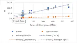 Evolution rate of Gene CIROP in comparison To Cytochrome C and Fibrinogen alpha