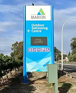 A "pool closed" sign outside the Marion Outdoor Swimming Centre in Park Holme, South Australia, April 2020
