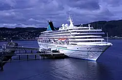 ^A cruise ship registered in Britain owned and operated by Princess Cruises (incorporated in Bermuda and with headquarters in Santa Clarita, California, US), a brand of Carnival Corporation & plc.