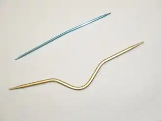 The stitches crossing behind are transferred to a small cable needle for storage while the stitches passing in front (or behind) are knitted. The former stitches are then transferred back to the original needle or knitted from the cable needle itself. Instead of a cable needle, some knitters prefer to use a large safety pin or, for a single stitch, simply hold it in their fingers while knitting the other stitch(es). Cabling is typically done only when working on the right side of the fabric, i.e., every other row. This creates a spacer row, which helps the fabric to relax.