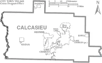 Map of Calcasieu Parish, Louisiana with municipal labels.