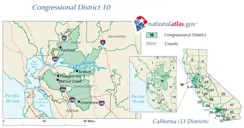 California's 10th congressional district Interactive map of district boundaries since 2023 (Used in the