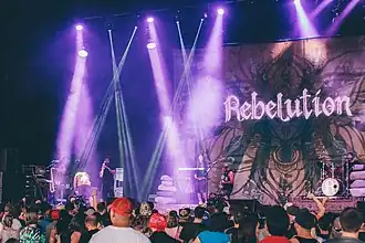 The California Roots Music and Art Festival (Cali Roots) is an American annual music and art festival, featuring reggae, reggae rock, folk, hip hop acts and live painting on-stage (Live painting stopped after 2019). The festival was founded in 2010 by Jeff Monser, and is held at the Monterey County Fairgrounds in Monterey, California, which was previously home of the Monterey Pop Festival where Jimi Hendrix set his guitar on fire in 1967. In its first year, the festival began as a one-day event headlining the Dirty Heads and Tribal Seeds. Today, The California Roots Festival has grown enormously in both size and attendance. It is organized over three full days with more than 11,000 attendees each day.[1] It is described as the largest reggae-rock festival in the world and claims to one of the largest reggae festivals in the United States.[2][3]