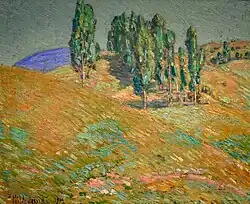 1914 California Hills, In Spring[9] Oil on canvas 30 × 32 in American Academy of Arts and Letters Hassam bequest, 1936[13]