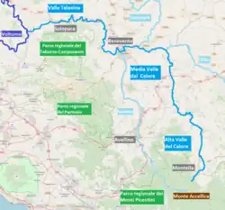 Map of the Calore River and its three main tributaries