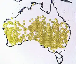The species grows in sandy soil on flats, low dunes and small hills and appears to be associated with Acacia woodlands and shrublands dominated by chenopods.[5]