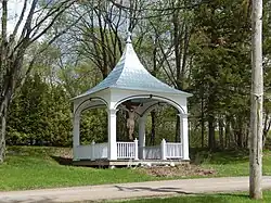 The concept of the Calvary of Sainte-Geneviève-de-Batiscan was based on the reproduction of the twelfth station of the path of the Cross in Oka. Following a pilgrimage in Oka, Father F.-X. Côté, former parish priest of Sainte-Geneviève-de-Batiscan, was back with the idea of erecting a cross covered with a wooden canopy on the land of Captain François Germain.[4][2]