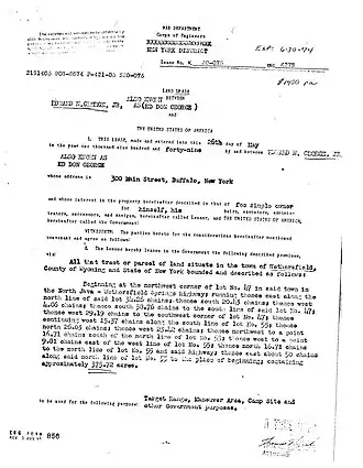 8. ^ Records of the Wyoming County Clerk's Office, New York State, Liber 262, page 204, recorded on 2nd day of June 1949