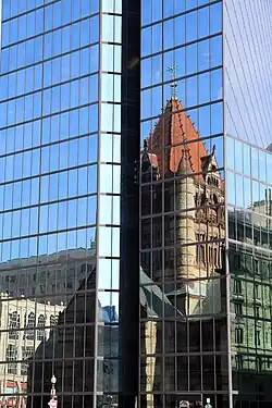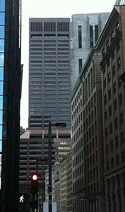 - ^ Douglass Shand-Tucci Built in Boston: City and Suburb, 1800-2000 Univ. of Mass. Press (1999) ISBN 1-55849-201-1, ISBN 978-1-55849-201-1, p. 296, "By the late 1970s, however, it was not only at the head of State Street that the early efforts at a distinctive Modernist aesthetic sensitive to the historic city was being abandoned. In 1971 even so venerable an institution as the First National Bank of Boston was responsible for an astonishingly bombastic tower by Campbell, Aldrich and Nulty, the heavy, dark red granite bulging middle range of which is difficult to explain and impossible to defend."