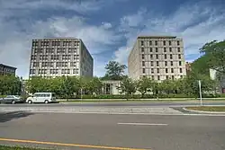 The original plan included dormitory quads on either side of Walker Memorial, which explains why it was surrounded by empty land when it was first constructed.[27] Only the East Campus dorm was built in this area, and as larger parallels rather than a quad. Academic buildings and tennis courts now occupy most of this land, and most newer dorms were actually built or purchased west of Massachusetts Avenue. In the 21st century, new high-rise apartment dormitories for grad students have been built in the Kendall Square area, at the new easternmost extent of the MIT campus.