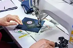 The brand is known for its distinctive logo, which resembles an arctic map of the North Pole encircled by red text that reads "CANADA GOOSE" on top and "ARCTIC PROGRAM" along the bottom. This badge is usually placed on the upper arm of a coat or jacket.[53] The company does not outsource its manufacturing or license its brand to other manufacturers, and brands its products as "Made in Canada".[54][55] Its manufacturing facilities are based in Canada.[23]