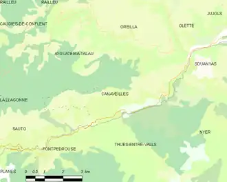 Map of Canaveilles and its surrounding communes