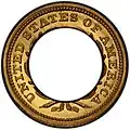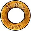 various weights | 90% Cu | 10% Ag[a] | 1850–1851, 1853[b], 1884–1885 | 196 ring cents (originals and restrikes) are known to exist.[1] Examples exist with or without a hole. | |