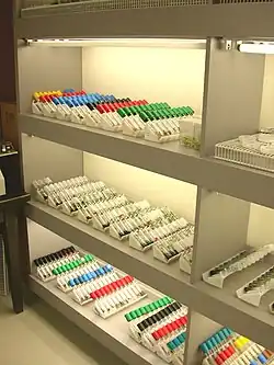 Micropropagation, also known as tissue culture, is the practice of rapidly multiplying stock plant material to produce a large number of progeny plants. Micropropagation uses in vitro division of small pieces in a sterile environment, where they first produce proliferations of tissue, which are then separated into small pieces that are treated differently so that they produce roots and new stem tissue. The steps in the process are regulated by different ratios of plant growth regulators. Many commercial organizations have produced cannas this way, and specifically the "Island Series" of cannas was introduced by means of mass-produced plants using this technique. However, cannas have a reputation for being difficult micropropagation candidates.[5]