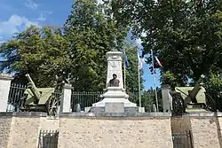 War memorial in Sainte-Suzanne-et-Chammes with two Mle 1934 howitzers.