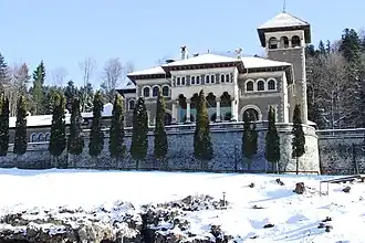 The House of Cantacuzino (French: Cantacuzène; Russian: Кантакузен, romanized: Kantakuzen) is a Romanian aristocratic family of Greek origin.[1][2] The family gave a number of princes to Wallachia and Moldavia, and it claimed descent from a branch of the Byzantine Kantakouzenos family, specifically from Byzantine Emperor[3] John VI Kantakouzenos (reigned 1347–1354). After the Russo-Ottoman War of 1710–11, a lateral branch of the family settled in Russia, receiving the princely (Knyaz, as opposed to Velikij Knyaz) status. In 1944, Prince Ștefan Cantacuzino settled in Sweden, where his descendants form part of the unintroduced nobility of that country.[4]