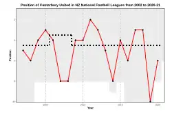 The club was founded in 2002 as a conglomerate of various Christchurch area clubs, in order to form a strong team to take part in the 2002 New Zealand National Soccer League.[2] In 2004, the league was replaced by the New Zealand Football Championship, run on a regional franchise basis, and Canterbury United became one of the eight competing teams.[3]