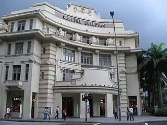 Namazie Mansions was built by the architecture firm Keys & Dowdeswell next to the existing structure of the Capitol Theatre, which was built earlier in 1929, and was completed in 1930.[1] It was named after the owner, Mirza Mohamed Ali Namazie.