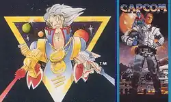 The origin of Captain Commando as a character predates his appearance in his self-titled game, in the packaging and manuals of many of Capcom's earlier titles for the Nintendo Entertainment System and Commodore 64 in North America released between 1986 and 1989.[7] All of Capcom's games released for the NES between 1986 and 1988 (1942, Commando, Ghosts 'n Goblins, Mega Man, Trojan, Section Z and Gun Smoke) were released as part of the "Captain Commando Challenge Series" and featured a drawing of the Captain on the back of the packaging, which depicted him as a "futuristic" space hero wielding a raygun on each hand and two large medallions around his neck with the letter "C" engraved on each. Each game's instruction manual also featured a "Special Message" from the Captain addressed to the owner of the game, congratulating the player for purchasing one of Capcom's products. Additionally, the instruction manual for Section Z has the otherwise nameless player character uniting with Captain Commando himself,[8] although it is unclear if that means they both control the spacesuit or if Captain Commando is a separate character.