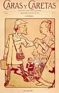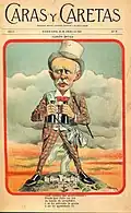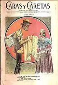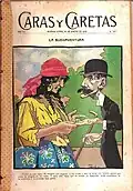 The Caras y Caretas was founded in Montevideo in 1890. Its main features were political satire, humour and topical issues, visually displayed through cartoons and photographs.[2] Eustaquio Pellicer (associated with French artist Charles Schütz)[3] was the director since its first number (dated 20 July 1890) until #144. At the invitation of Argentine journalist Bartolomé Mitre Vedia, Pellicer moved to Buenos Aires, establishing the Argentine edition of the magazine there. The first number (released 19 August 1898) had 24 pages.[1]